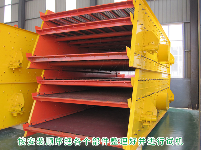安裝開始時把基礎(chǔ)找平,接著按照支承或吊掛裝置,圓形振動篩的安裝圖,按順序把各個部件整理好,彈簧的裝入可按標(biāo)記的試機進(jìn)行選配。