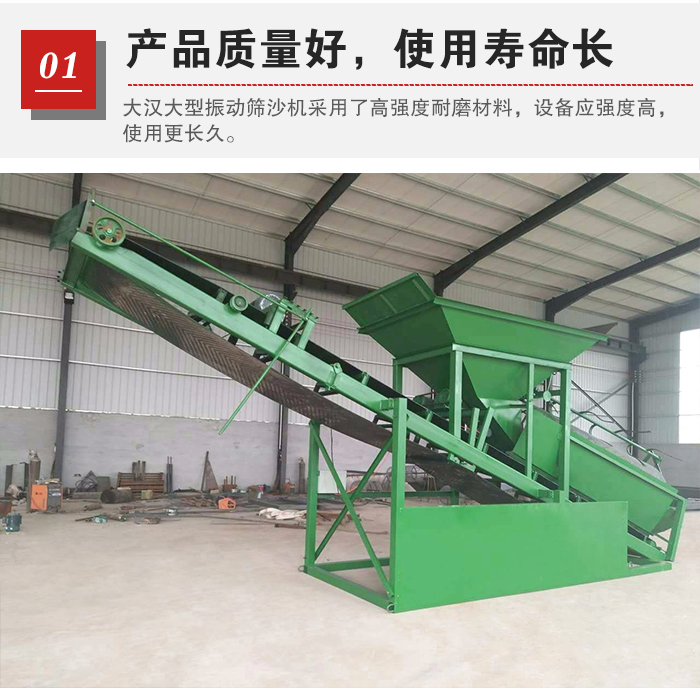 大型振動篩沙機是用于河道,水庫,煤場的沙石分離設(shè)備,大型振動篩沙機多少錢一臺?這里以新鄉(xiāng)大漢公司為例。