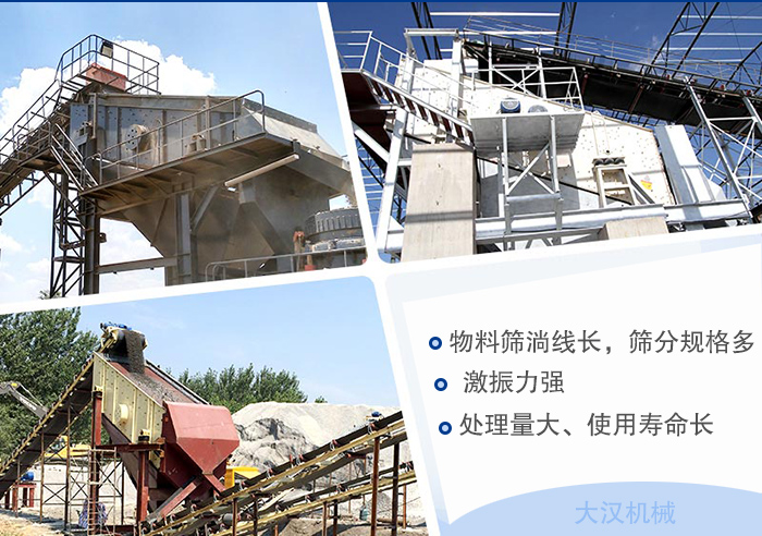 優(yōu)勢:物料篩淌線長,篩分規(guī)格多;采用偏心塊作為激振力,激振力強;篩子橫梁與篩箱采用高強度螺栓聯(lián)接,結構簡單,維修方便快捷;采用小振幅、高頻率、大傾角結構,篩分效率高、處理量大、使用壽命長、電耗低、噪音小。