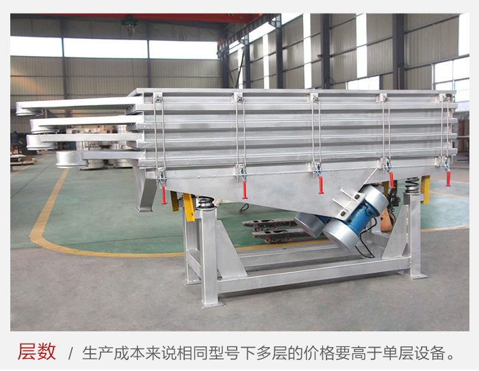 單層振動篩與二層振動篩的區(qū)別還是很大的。價格不同,就設(shè)計(jì)和生產(chǎn)成本來說相同型號的振動篩多層的價格要高于單層設(shè)備。多層振動篩可以篩分多種物料,而單層振動篩只能篩分一種物料。所以這也是選擇雙層振動篩比較好的原因。