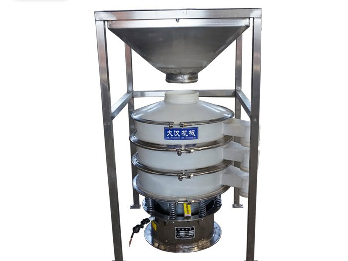 特點 利用電機軸上的配重的簡單調整以及它們產生的三維振動來篩選物料,可用于去除破碎或尺寸過小的產品,可在一次操作中提供多達5級的分級,以實現(xiàn)的粒度分布 使用超聲波系統(tǒng)對篩網(wǎng)施加高頻振動,振動的頻率打破了表面張力,使不銹鋼網(wǎng)有效地無摩擦,并防止過大和過小的顆粒堵塞或堵塞網(wǎng)篩,可以在更細的網(wǎng)格(低至 20 微米)上進行篩分。 進出料口設計在同一垂直方向,底部大流量出口使物料直接排出,排料速度快,產量是是普通圓篩的2-5倍,可直接串聯(lián)在管道中使用,去除管道中的異物和雜質。 使用了2級電機作為激振源,使振動強度達到普通振動篩的2-3倍,可以快速破壞進入篩網(wǎng)中的粘稠漿液的表面張力,從而減少它們在篩網(wǎng)上的停留時間,實現(xiàn)快速過濾。